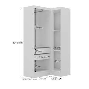 Conheça o Guarda-Roupa Modulado Viena 3 Portas 2 Gavetas Espresso Móveis Nogal/Branco, a solução ideal para otimizar espaços. Com sua estrutura em MDP de alta qualidade, proporciona organização inteligente aliada a um design sofisticado. Transforme seu ambiente com este móvel versátil, garantindo funcionalidade e elegância. Aproveite a garantia de 3 meses e o acabamento fosco para um dormitório que reflete seu estilo único." Altura do Conjunto: 204.5 cm Ambiente Principal: Quarto codigo_ean: 7900288263100 Cor: Branco Cor do Produto: Branco Informação Complementar: 1x Módulo de Canto Reto 1 Porta 204,5cm X 85cm Viena Branco Largura: 85 cm Altura: 204,5 cm Peso: 54,5 kg Profundidade: 45 cm Necessita Montagem: Sim