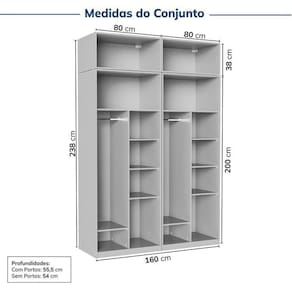 2x Kit 2 Portas Reflecta para Guarda-roupa Modular 80cm Jade Cabecasa Madeiramadeira Avelã Largura: 39,3 cm Altura: 193,2 cm Peso: 19,95 kg Profundidade: 2 cm Necessita Montagem: Sim