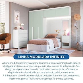 A linha modulada Infinity combina conforto, estilo e otimização o de espaço, ideal para ambientes compactos que não abrem mão da sofisticação. Seu design inteligente valoriza cada centímetro do ambiente, oferecendo elegância e funcionalidade em uma solução prática e moderna.