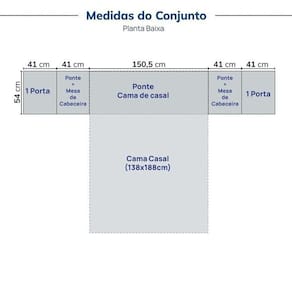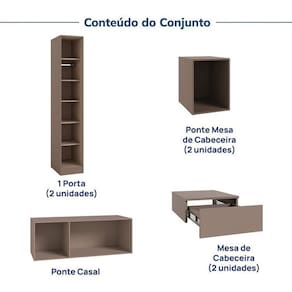 1x Ponte Modular Casal 100% MDF 3 Portas Orion CabeCasa MadeiraOriginals Mocha