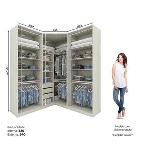 O Guarda Roupa modulado 3 Peças, 6 Portas e 3 Gavetas Seletto possui acabamento com pintura UV, que garante textura impecável. Composto por módulos inidividuais: 1 Modulo Canto Closet com calceiro, 3 gavetas e prateleiras, otimizando o espaço do ambiente. 2 Guarda Roupa 2 Portas com montado com prateleiras ou cabideiro, escolha na hora de montar. Com 240,5 cm de altura e 54 cm de profundidade, o Quarto Seletto combina robustez, design imponente e funcionalidade, com dobradiças Soft Close e estilo moderno, criando um ambiente organizado e prático. Cor: Areia Fabricante: Henn Altura (cm): 240 Largura (cm): 109,5 Profundidade: 109,5 Material Principal: MDP Espessura da Estrutura: 15mm Acabamento: Pintura UV Texturizada Cor Interna: Trama Escala de Brilho: Fosco Possui Espelho: Sim Montagem Flex: Sim Possui Portas: Sim Qauntidade de Portas: 6 Und. Possui Calçadeiro: 3 Und. Possui Cabideiros: 1 Und. Itens Inclusos: 1 Roupeiro Canto Closet 2 Portas 2 Roupeiros 2 Portas com Cabideiro Possui Gavetas: Sim Quantidade de Gavetas: 3 Und. Possui Prateleiras: Sim Peso Máximo por Prateleiras: 8 Kg Produto Suporta até (Kg): 90 Kg Recomendações de Uso, Manutenção e Limpeza: Para limpeza de seu móvel, use uma flanela limpa e seca. Não utilize produtos químicos que possam danificar o produto. Necessita Montagem: Sim Sitema de Montagem: Parafusos e Cavilhas Complexidade da Montagem: Alta: Deve ser montado por um montador especializado.