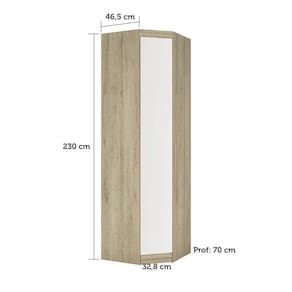 O Guarda Roupa de Canto Oblíquo Modulado Master é perfeito para otimização de espaço e peça principal na organização. Possui 3 prateleiras internas com 70cm de profundidade, perfeito para acomodar peças maiores como cobertas. Conta com 1 porta de espelho com moldura em alumínio. Com acabamento em pintura U.V. de alta definição e toque texturizado de madeira. Escala de brilho do móvel é semi-fosco. Você pode usar também como um armário para escritório ou até mesmo na lavanderia.