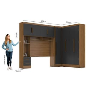 1x Módulo Closet Smart Aéreo com Criado 2 Gavetas com Maleiro Cinamomo/Cinza Largura: 185.6 Altura: 217 Peso: 64.75 Profundidade: 40 Necessita Montagem: Sim