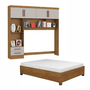 Guarda Roupa Modulado Com Cama Paris 4 Portas 2 Gavetas Freijó Com Off White O Guarda Roupa Modulado 4 Portas Paris com Cama Casal Paula e ideal para otimizar o espaco do ambiente e deixar tudo organizado. Possui Maleiros, 2 nichos externos, 1 prateleira interna, 4 portas, 2 gavetas externas com corredicas metalicas.