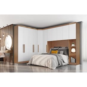 Guarda Roupas Modulado com Cabeceira de Casal Florença 6 Portas 5 Gavetas Branco Moval