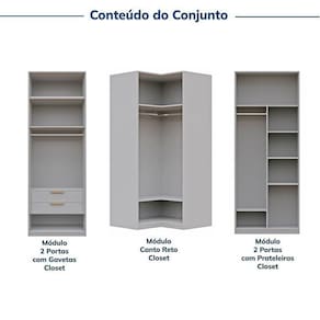 1x Guarda-Roupa de Canto Reto Modular 95cm sem Portas com Cabideiros Jade Cinza Urbano Largura: 95 cm Altura: 200 cm Peso: 71,92 kg Profundidade: 95 cm Necessita Montagem: Sim
