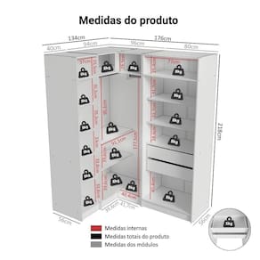Cor: Branco | Garantia: 3 meses contra de fabricação | Dimensões - Altura: 218 cm | Dimensões - Largura: 310 cm | Dimensões - Profundidade: 56 cm | Produto: Módulos guarda-roupas | Marca: Madesa | Peso aproximado: 225,2 kg | Material: MDP | Estado de Origem: RS | Conteúdo da embalagem: Um Módulos guarda-roupas | Material para Filtro: MDP | Instruções/Cuidados: Utilize um pano limpo, levemente umedecido e seque em seguida a superfície. Não usar produtos químicos ou abrasivos para a limpeza. Recomendamos polir seu móvel com lustra-móveis duas a três vezes por ano. | Produto precisa de Montagem?: Sim | Peso Produto Com Embalagem (Kg): 225,2 | Altura do Produto com Embalagem (cm): 59,4 | Largura Produto Com Embalagem (cm): 55,5 | Comprimento Produto Com Embalagem (cm): 223,3 | Descrição do Tamanho: 218 cm x 310 cm x 56 cm | Nome do Simples no Fornecedor: Guarda-Roupa Modulado de Canto 310 cm 5 Portas 2 Gavetas Branco Neo Madesa 01 | Fabricante: Madesa | RBN: Casa/Móveis/Móveis para o Quarto/Armários e Guarda-Roupas | Quantidade de Gavetas: 2 | Quantidade de portas: 5 | Materiais do corpo: MDP | Quantidade de caixas de embalagem: 6 | Bullet Point 1: Dimensões: 218 cmaltura x 310 cm largura x 56 cm profundidade | Bullet Point 2: A Linha Neo da Madesa foi desenvolvida para oferecer soluções planejadas que unem funcionalidade e sofisticação em cada detalhe. | Bullet Point 3: O conjunto é formado por três módulos que se completam, oferecendo prateleiras espaçosas, gavetas práticas e cabideiros resistentes, garantindo organização para diferentes necessidades. | Bullet Point 4: O acabamento branco de alta resistência garante durabilidade e fácil combinação com diferentes estilos de decoração. | É Frágil: Não | Quantidade de Itens: 1 | Certificação de teste externa: Sim | Modelo: MDNE31000109 | Componentes incluídos: Portas | Precisa de baterias ou pilhas: Não | da peça (part_number): MDNE31000109 | Peso do item (item_weight): ;unit=kilograms | Dimensões do item P x L x A (item_depth_width_height): depth#value=56;depth#unit=centimeters;height#value=218;height#unit=centimeters;width#value=310;width#unit=centimeters | Requer montagem (REQUIRES_ASSEMBLY): Sim | Inclui manual de montagem (INCLUDES_ASSEMBLY_MANUAL): Sim | Cor: Branco
