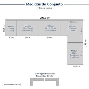 Largura do Conjunto: 295.5 cm Marca: CabeCasa MadeiraMadeira Material Principal: MDP Tipo de Guarda-Roupa: De Canto