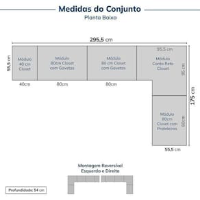 1x Guarda-roupa de Canto Reto Modular 95cm sem Portas com Cabideiros Jade Cabecasa Madeiramadeira Branco Largura: 95 cm Altura: 200 cm Peso: 71,92 kg Profundidade: 95 cm Necessita Montagem: Sim