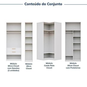 2x Guarda-roupa Modular 80cm sem Portas com Gaveteiro Jade Cabecasa Madeiramadeira Branco Largura: 80 cm Altura: 200 cm Peso: 61,47 kg Profundidade: 54 cm Necessita Montagem: Sim