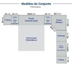 1x Ponte Modular Casal 100% MDF 3 Portas Orion CabeCasa MadeiraOriginals Aveia