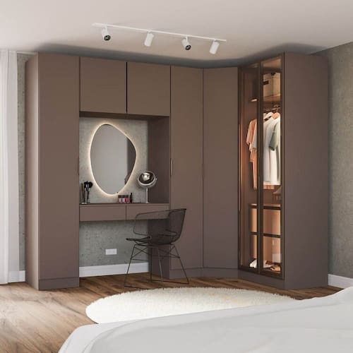 1x Guarda Roupa Modulado 100% MDF de Canto Oblíquo Orion CabeCasa MadeiraOriginals Mocha