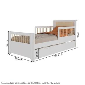 1x Cama Solteiro Evolutiva Wave Juvenil em Rattan com Led Branco/Natural
