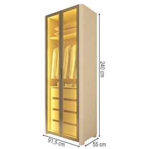 O(a) Guarda-Roupa Modulado Innova 2 Portas 4 Gavetas com Vidro e Led 100% Mdf Off White - Gelius é produzido em 100% MDF na escala de brilho Brilhante, e possui um grau de dificuldade de montagem: Médio.
