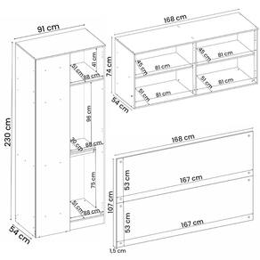 Dimensões: 248 cm (L Maior) x 171 cm (L Menor) x 230 cm(A) x 54 cm(P);