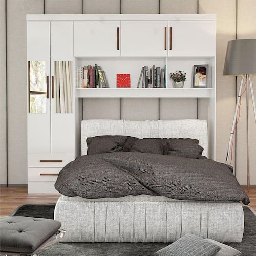 Guarda Roupa Modulado Paris 5 Portas Com Espelho E 2 Gavetas Branco O Guarda-Roupa Casal Modulado Paris 5 Portas com Espelho e 2 gavetas e ideal para otimizar o espaco do ambiente e deixar tudo organizado. Possui Maleiros, 2 nicho externos, 1 prateleira interna, 5 portas, 2 gavetas externas com corredicas metalicas.