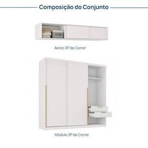 1x Guarda-roupa 3 Portas de Correr Jade Cabecasa Madeiramadeira Branco