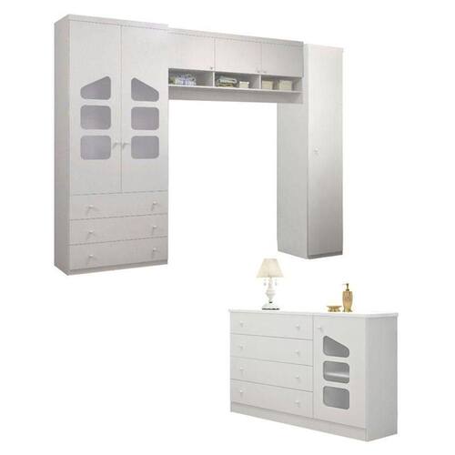 Guarda Roupa Módulo e Cômoda Infantil Eloisa Branco Brilho Phoenix Baby