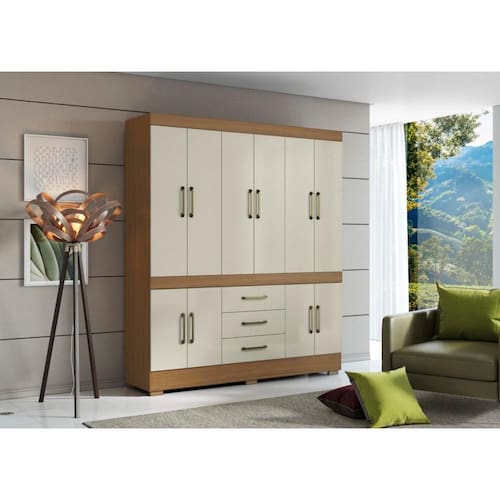 Guarda-Roupa Mônaco 10 Portas 3 Gavetas Atacama Areia - Aramóveis - Off White