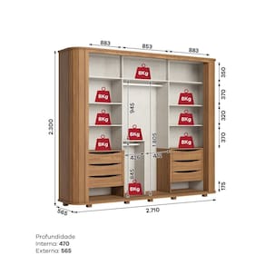 O Roupeiro Mozzate foi deselvolvido para o público que busca elegância e qualidade. O produto possui 02 portas deslizantes reversíveis "Flex" de cor, e conta com cabideiro e calceiro em alumínio, 06 gavetas com corrediças telescópicas com usinagem para pega, puxadores em forma de apliques ripados, cantos arredondados com ripado, chápeu curvo de 25 mm e espelhos com cantos arredondados. É com toda certeza o item que faltava para trazer graça ao seu quarto! Cor: Nature/Off White/Preto Altura (cm): 230 Largura (cm): 271 Profundidade (cm): 56,5 Cor Interna: Trama Branco (Branco Acinzentado) Escala de Brilho: Fosco Ambiente: Quarto Acabamento: Pintura UV Texturizada Possui Vidros: Não Material Principal: MDP Produto Suporta até (Kg): 90 Kg Possui Espelho: Sim Possui Gavetas: Sim - Quantidade: 6 Und. - Peso Maximo Suportado por Gaveta: 3 Kg Possui Pés: Sim Quantidade de Pés: 10 Und. - Material dos Pés: ABS Possui Portas: Sim - Quantidade: 2 Und. - Tipo: Correr Possui Prateleiras: Sim - Peso Maximo por Prateleira: 8 Kg - Quantidade: 5 Und. Recomendações de Uso, Manutenção e Limpeza: Para limpeza de seu móvel, use uma flanela limpa e seca. Não utilize produtos químicos que possam danificar o produto. Sistema de Montagem: Parafusos e Cavilhas Necessita Montagem: Sim Complexidade da Montagem: Alta: Deve ser montado por um montador especializado. Itens Inclusos: 1 Guarda Roupa e Instrução de Montagem Garantia: 90 Dias