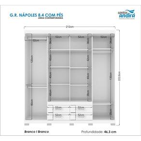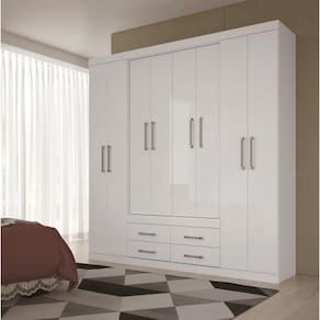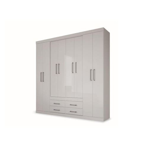 - 08 Portas Com Dobradiças Metálicas - 09 Prateleiras - 03 Cabideiro/Calceiro Eco Frizado Em Alumínio - 04 Gavetas Com Corrediças Metálicas - Amplo Maleiro - Espaço Para Sapatos - Puxadores Em Pvc - 10 Pés Em Pvc