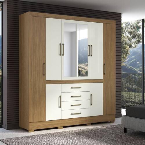Guarda Roupa Napoli 8 Portas 4 Gavetas Com Espelho Aramoveis - Off White