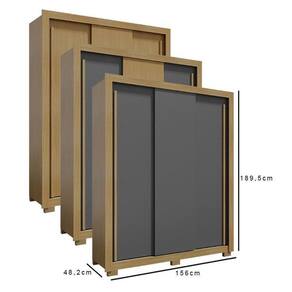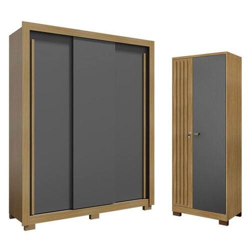 Guarda Roupa Nevoa 3 Portas e Armário Multiuso Versátile com Chave Carvalho Americano Grafite - Incorplac