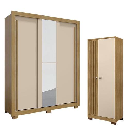 Guarda Roupa Nevoa Flex 3 Portas com Espelho e Armário Multiuso Versátile com Chave Carvalho Americano Off White - Incorplac