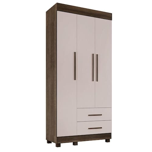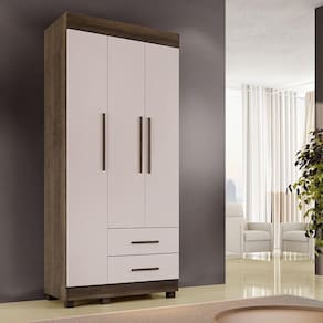 Guarda-roupa New Copacabana 3 Portas 2 Gavetas - Benetil Imbuia Off