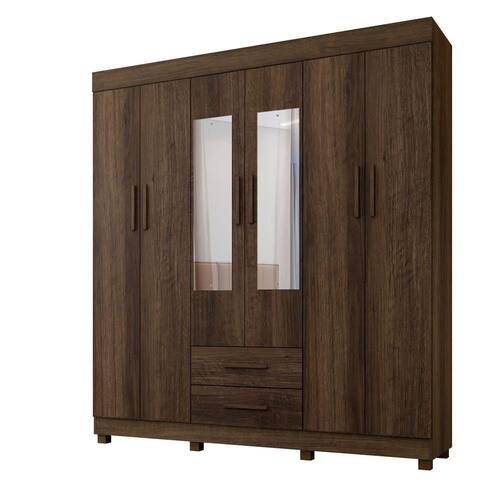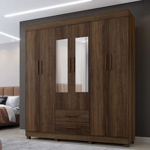 Guarda Roupa New Copacabana 6 Portas 2 Gavetas 7 Prateleiras Imbuia O Guarda-Roupa New Copacabana e produzido em chapa de 15 mm que garante robustez e maior vida util , contem 6 portas, 7 prateleiras, 2 gavetas com corredicas telescopica, cabideiro em aluminio, espaco para longos, pes incluso no produto e puxadores modernos , alem de ter espelho nas portas centrais otimo custo beneficio. Sua fabricacao utiliza a linha mdp perffect, que une a sustentabilidade a inovacao tecnologica, proporcionando durabilidade e facil limpeza; inspirando sofisticacao ao mobiliario. Sua pintura UV conta com boa resistencia, e facil de limpar e e ecologicamente correto, pois utiliza madeira de reflorestamento, evitando o desmatamento. Caracteristicas: Material principal: MDP Espessura da chapa: 15 mm Escala de brilho: semibrilho Sistema de montagem: parafuso, cavilha e cantoneiras metalicas Quantidade de Portas: 06 Quantidade de Prateleiras: 07 Quantidade de Gavetas: 02