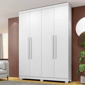 Guarda Roupa New Master 4 Portas 3 Gavetas 8 Prateleiras Branco O Guarda-Roupa New Master 4 portas e produzido em mdp 15 mm que garante a vida util muito maior. Contem 4 portas e 8 prateleiras e nichos que acomodam suas roupas com maior conforto. Contem 3 gavetas espacosas com corredicas telescopicas que garante suavidade e durabilidade. cabideiro em aluminio, puxadores madeirados e pes inclusos sua fabricacao utiliza a linha mdp perffect, que une a sustentabilidade a inovacao tecnologica, proporcionando durabilidade e facil limpeza; inspirando sofisticacao ao mobiliario. Sua pintura uv conta com boa resistencia, e facil de limpar e e ecologicamente correto, pois utiliza madeira de reflorestamento, evitando o desmatamento. Caracteristicas: Material principal: MDP Espessura da chapa: 15 mm Escala de brilho: semibrilho Acabamento: Pintura UV Sistema de montagem: parafuso, cavilha e cantoneiras metalicas