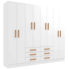 Guarda Roupa New Paris Casal 8 Portas 6 Gavetas Demobile Organização e estilo para o seu quarto! O Guarda Roupa New Paris Casal 8 Portas 6 Gavetas Demobile é ideal para quem busca espaço e praticidade no dia a dia. Com 8 portas e 6 gavetas externas, oferece ampla capacidade para guardar roupas, acessórios e objetos pessoais com total eficiência. Seu design moderno se adapta facilmente a diferentes estilos de decoração, e os puxadores discretos garantem um visual limpo e elegante. Internamente, conta com cabideiros resistentes, prateleiras bem distribuídas e compartimentos pensados para facilitar a rotina. Produzido em MDP de qualidade, possui acabamento durável e fácil de limpar. Um móvel completo, ideal para casais que valorizam funcionalidade sem abrir mão da estética.\nMEDIDAS\nAltura 182 cm\nLargura 182 cm\nProfundidade 40 cm\nCARACTERÍSTICAS\nModelo Guarda Roupa New Paris\nTipo de Produto Guarda Roupa de Casal\nGarantia 3 meses\nAcabamento Pintura UV\nFabricante Demobile\nEstrutura MDP\nQuantidade de Portas 08\nQuantidade de Gavetas 06\nTipo de Porta Bater\nMaterial Puxadores Plástico\nEstilo Moderno\nTipo de Dobradiça Metálica\nNecessita Montagem Sim\nAcompanha Manual de Instalação Sim\nINFORMAÇÕES IMPORTANTES\nObjetos decorativos que porventura apareçam na foto, não acompanham o produto. Não nos responsabilizamos pela montagem/instalação dos produtos.\nMontagens, desmontagens e instalações são responsabilidades do cliente. Indicamos que contrate uma empresa de montagem ou um montador de sua confiança.\nAlém disso, favor verificar se os pés e acessórios estão dentro do forro inferior do produto. Em suma, todas as informações divulgadas sobre o produto são de responsabilidade do Fabricante.\nAs cores do produto podem variar de acordo com o seu monitor, a iluminação do ambiente em que você está e até mesmo a sua percepção visual. Além da cor, pequenos detalhes e acabamentos podem não ficar evidentes na foto, por isso as imagens são meramente ilustrativas