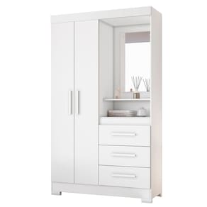 Sua estrutura conta com três portas articuladas que facilitam o acesso aos compartimentos internos, além de oferecer uma excelente divisão entre prateleiras, nichos e cabideiro, otimizando o espaço para roupas, calçados e acessórios.