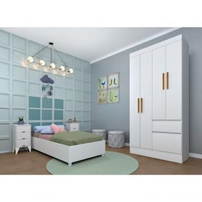 Guarda Roupa Oregon 4 Portas 2 Gavetas Tcil Já imaginou um móvel perfeito para deixar tudo organizado no quarto do seu filho? Com este Guarda-Roupa Oregon 4 Portas você não terá mais preocupações com a bagunça! Ele possui espaço para acomodar perfeitamente as suas roupas e acessórios e ainda tem 4 opções de para o detalhe das gavetas! Não é perfeito? Medidas: Altura: 204 cm Largura: 108 cm Profundidade: 46 cm Produto em MDP Corrediça Metálica na Gaveta Dobradiças Metálicas nas Portas Cabideiro de Aluminio Puxadores das Portas em mdf Informações importantes: - Os Objetos que ambientam as imagens não acompanham o produto. - Não nos responsabilizamos pela e instalação dos produtos. A deve ser realizada por um profissional, conforme as instruções do manual do produto. - Pode haver alguma diferença de tonalidade entre a foto e o produto, devido ao tratamento de imagens e a calibração do seu monitor ou dispositivo. - A entrega é realizada por transportadora, não nos responsabilizamos, no ato da entrega por desmontagens, subir escadas/elevadores ou transporte por guincho para apartamentos. - Antes de comprar o seu produto verifique as medidas e o local onde pretende instalar.