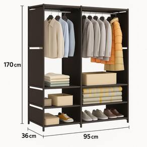 Este guarda-roupa aberto otimiza o espaço e facilita a organização do dia a dia com seu design versátil e estrutura reforçada. Ideal para pendurar roupas, organizar calçados e guardar caixas ou acessórios com fácil acesso e visual limpo. Também é uma excelente opção como expositor em lojas ou feiras.