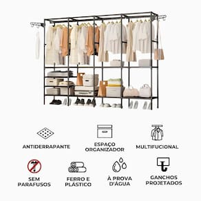 - Durabilidade Garantida: O trilho superior é projetado com tubos circulares e travas em cada lado, evitando quedas e garantindo a das suas roupas.