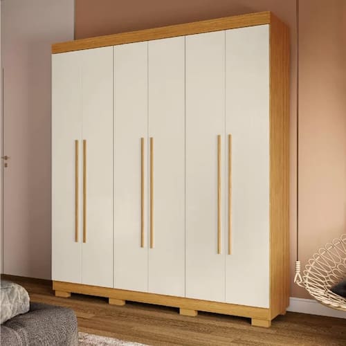 Guarda Roupa Paolla 6 Pts Mdp 180 La - Nature/Off White - Acp