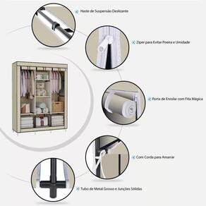 Este guarda-roupa portátil é uma excelente unidade de arrumação para manter o seu quarto limpo e arrumado. Com espaço extra para suas roupas, sapatos, livros, brinquedos e muito mais, é perfeito para qualquer quarto.Vem com uma capa de tecido não tecido que não só oferece uma ótima aparência, mas também uma maneira fabulosa de esconder qualquer bagunça feia.Características:Material Durável: Fabricado com aço durável e resina à prova de sujeira, fácil de limpar para manutenção e cuidado.Espaço Generoso: Longos espaços para pendurar permitem vestidos de noite e trajes espaciais ocasionais, enquanto as prateleiras oferecem espaços menores para roupas dobráveis, acessórios e outros itens. Instalação Fácil: Fácil montagem, não são necessárias ferramentas ou habilidades especiais, leva de 15 a 20 minutos.Capa de Enrolar: A capa de enrolar evita a entrada de poeira, mantendo suas roupas limpas e protegidas.Design Portátil: Leve e portátil, feito de estruturas de ferro forjado com coberturas de tecido não tecido, pode ser movido facilmente para os espaços necessários. Especificações:Material: MetalCapacidade de Carga: 100 quilogramasNúmero de Prateleiras: 8Tamanho: 130x45x175Os guarda-roupas dessa linha são instalados em salas lotadas, servindo como peças decorativas e também como convenientes espaços de armazenamento de emergência para compras impulsivas. Sua leveza e portabilidade garantem facilidade de movimentação conforme necessário.