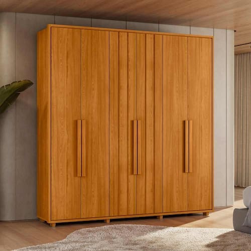 O Guarda-roupa Portinari combina elegância, funcionalidade e durabilidade para transformar seu ambiente com sofisticação. Seu design moderno conta com portas com ripado angular, criando um visual imponente e sofisticado que valoriza qualquer espaço.