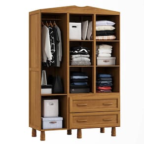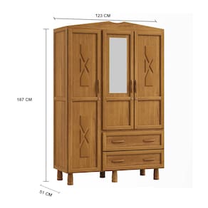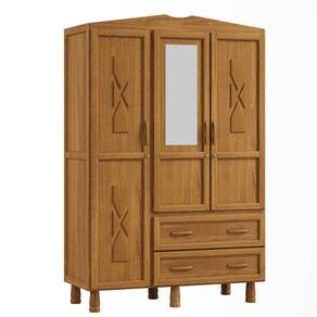 Com design funcional e elegante, o Guarda-Roupa Prático é ideal para quem busca otimizar o espaço sem abrir mão da sofisticação. Fabricado em madeira maciça de Pinus com acabamento em Carvalho Acetinado, conta com 3 portas, sendo uma com espelho, além de 2 gavetas com corrediças metálicas. Seu interior inclui prateleiras e cabideiro, proporcionando excelente organização para roupas e acessórios.