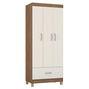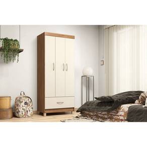 Produzido em MDP com acabamento em pintura UV, o modelo conta com 3 portas, oferecendo divisão interna ideal para acomodar roupas longas, peças dobradas e acessórios. Possui cabideiro em madeira revestida, garantindo suporte adequado para roupas penduradas, além de prateleiras internas que facilitam a organização.