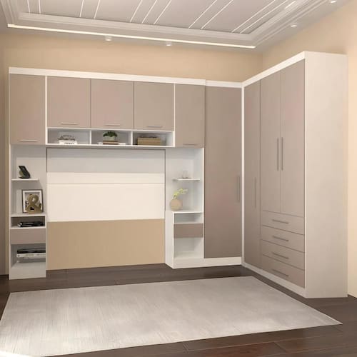 Esse Quarto Queen Modulado é perfeito pra quem quer unir praticidade e beleza no Quarto de Queen. Cada módulo foi pensado pra deixar o ambiente mais funcional, moderno e organizado.