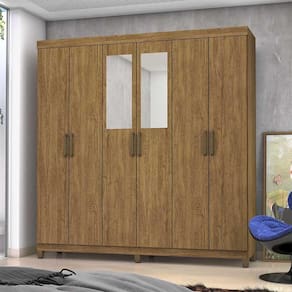 Guarda Roupa R22 6 Portas 2 Gavetas Espelho Carioca Móveis Cinamomo Guarda-Roupa R22 e um produto perfeito para quem possui um ambiente com espaco reduzido e ainda procura qualidade e durabilidade no mesmo moveis. Possui 1,87m de altura, 1,53m de largura e 0,40m de profundidade combinado com 6 portas, 2 gavetas, 2 prateleiras e um grande cabideiro, deixando o produto com uma otima divisao interna. O maleiro e ideal para guardar malas, cobertores, edredons. O cabideiro alem de resistente, e ideal para pendurar pares de blusas, camisas acessorios. As prateleiras sao perfeitas para colocar roupas como blusas, shorts, regatas, kits de maquiagem, toalhas, caixinhas com acessorios e bolsas menores. As gavetas fixadas sobre corredicas metalicas, sao ideais para guardas blusas dobradas, shorts, malhas e roupas intimas. Estrutura do produto em MDP. Caracteristicas: Marca: Carioca Moveis Modelo: R22 Estrutura: MDP 6 Portas 2 Gavetas 2 Prateleiras Espelho: Sim