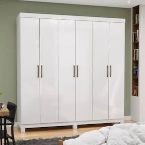 Guarda-Roupa Recife é um produto perfeito para quem possui um ambiente com espaço reduzido e ainda procura qualidade e durabilidade no mesmo móveis. Possui 1,80m de altura, 1,53m de largura e 0,40m de profundidade combinado com 6 portas, 2 gavetas, 2 prateleiras e um grande cabideiro, deixando o produto com uma ótima divisão interna. O maleiro é ideal para guardar malas, cobertores, edredons.