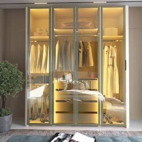 O Roupeiro Innova é um móvel moderno e elegante. Possui 04 portas em vidro Reflecta, cantos curvos e luz LED em cor quente que se destacam em seu visual e trazem um tom de aconchego a decoração. Seu interior pensado para facilitar a organização, possui gavetas espaçosas com corrediças telescópicas, ampla quantidade de prateleiras e tubos cabideiros. Este é o roupeiro perfeito para transformar seu quarto.