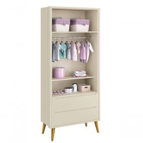 O Guarda-Roupa 2PTs Theo New - RELLER possui um estilo retrô com os pés em madeira maciça no estilo palito, possui um desing clean que combina com vários estilos de decoração. Contempla um espaço amplo e com divisórias internas para que as roupinhas do bebê possam ser organizadas e armazenadas com comodidade, não possui puxadores, as aberturas ocorrem através de recortes no MDF que possibilitam o perfeito encaixe da mão para a abertura das portas e gavetas.