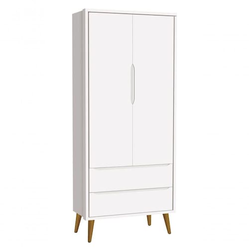 O Guarda-Roupa 2PTs Theo New - RELLER possui um estilo retrô com os pés em madeira maciça no estilo palito, possui um desing clean que combina com vários estilos de decoração. Contempla um espaço amplo e com divisórias internas para que as roupinhas do bebê possam ser organizadas e armazenadas com comodidade, não possui puxadores, as aberturas ocorrem através de recortes no MDF que possibilitam o perfeito encaixe da mão para a abertura das portas e gavetas.