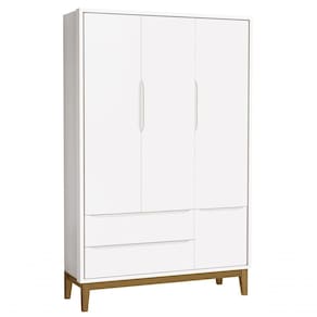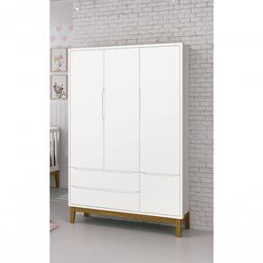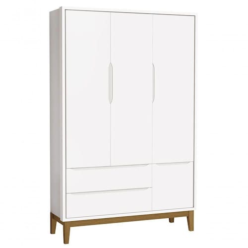 O Guarda Roupa 3PTs Classic New - MóveisAqui introduz um estilo retrô com os pés em madeira maciça, apresenta um desing clean que combina com vários estilos de decoração. Possui um espaço amplo e com divisórias internas para que as roupinhas do bebê possam ser organizadas e armazenadas com comodidade, puxadores no modelo embutido, as aberturas ocorrem através de recortes no MDF que possibilitam o perfeito encaixe da mão para a abertura das portas e gavetas.