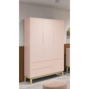 O Guarda Roupa 3PTs Classic New - MóveisAqui introduz um estilo retrô com os pés em madeira maciça, apresenta um desing clean que combina com vários estilos de decoração. Possui um espaço amplo e com divisórias internas para que as roupinhas do bebê possam ser organizadas e armazenadas com comodidade, puxadores no modelo embutido, as aberturas ocorrem através de recortes no MDF que possibilitam o perfeito encaixe da mão para a abertura das portas e gavetas.