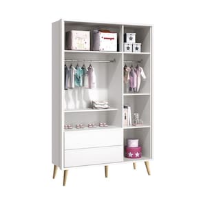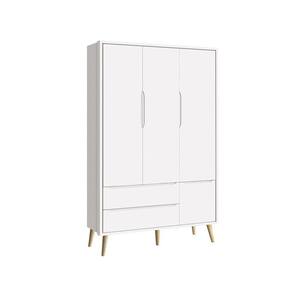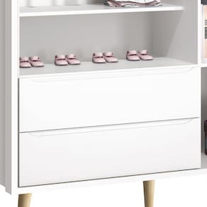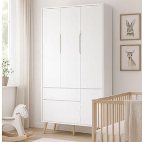 O Guarda-Roupa 3PTs Theo New - RELLER contempla um estilo retrô com os pés em madeira maciça no estilo palito, possui um desing clean que combina com vários estilos de decoração. Proporciona um super espaço para armazenamento e com divisórias internas para que as roupinhas do bebê possam ser organizadas e armazenadas com comodidade, não possui puxadores, as aberturas ocorrem através de recortes no MDF que possibilitam o perfeito encaixe da mão para a abertura das portas e gavetas.